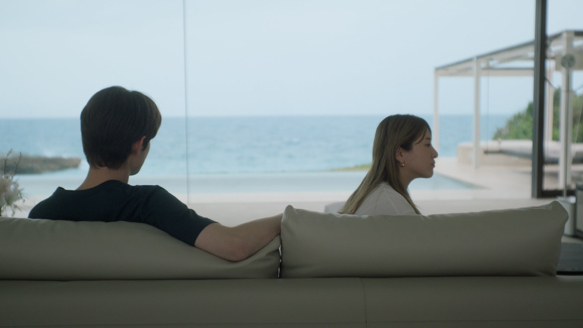 今回のTVCMでは、海が⾒える絶景の部屋に場所を移して、⾮⽇常をリラックスして楽しむふたりを描いています。今までのTVCMシリーズで⾒せてきたふたりとは違う表情や空気感に注⽬です。