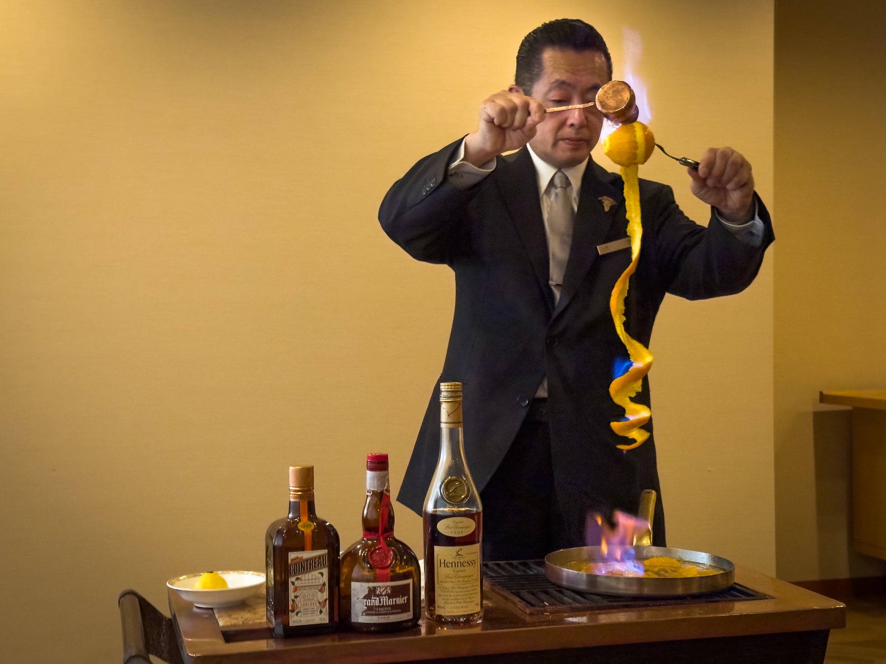 最後にブランデーでオレンジとともにフレイミングいたします。