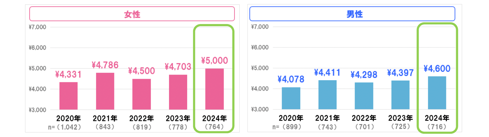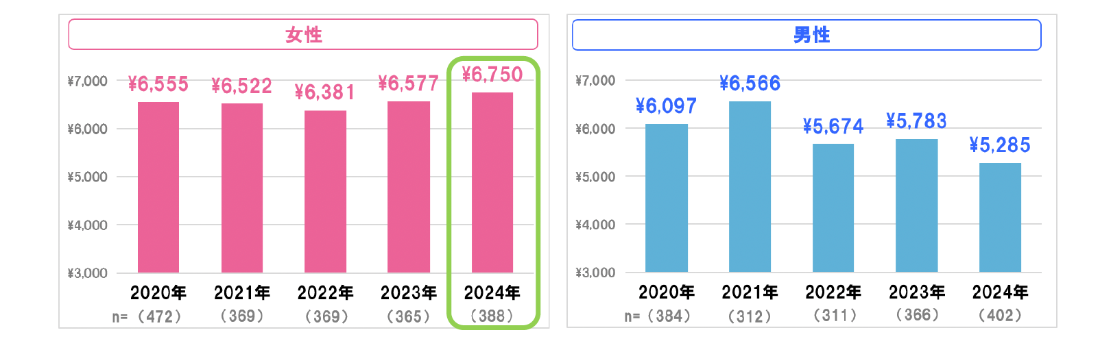 男女の【着衣の施術】、女性の【脱衣の施術】の1回あたり利用金額がここ5年で最高額。