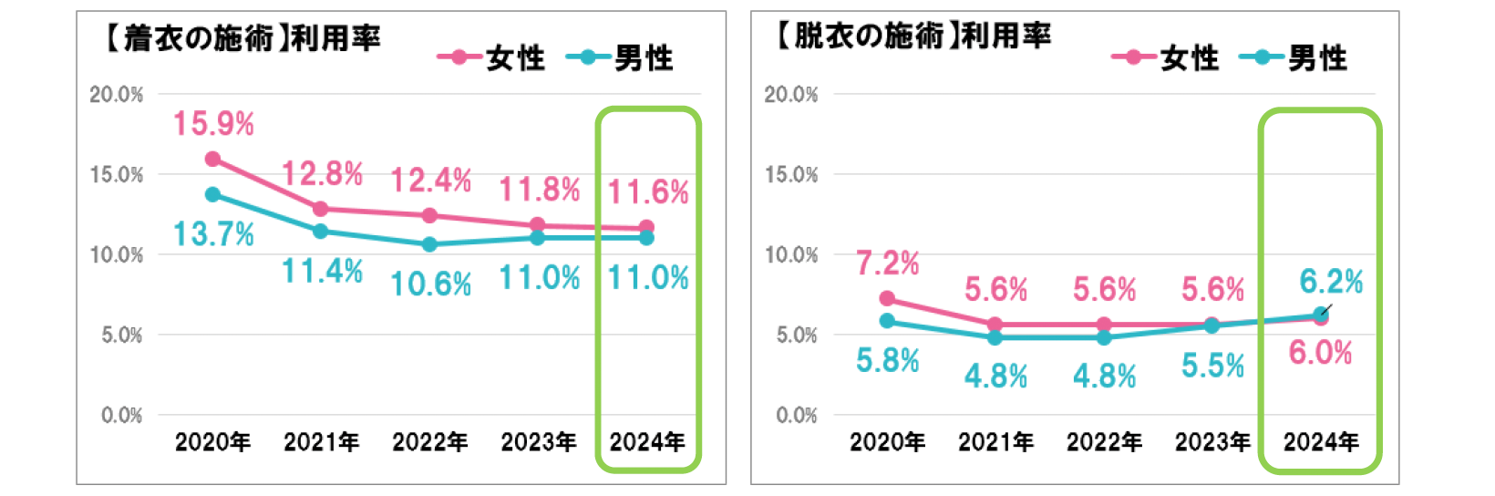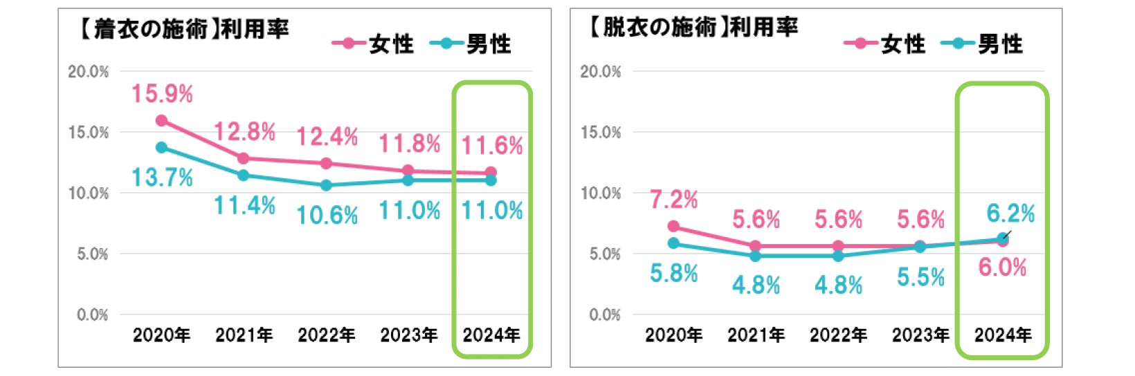 【脱衣の施術】は男女の利用率が逆転。男性の利用率が2年連続で増加。