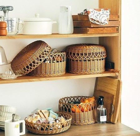 まるいフォルムがかわいいバスケットです。ふたをして使ったり、ふたを裏返して浅めのバスケットとして使ったり、自由に楽しめます。