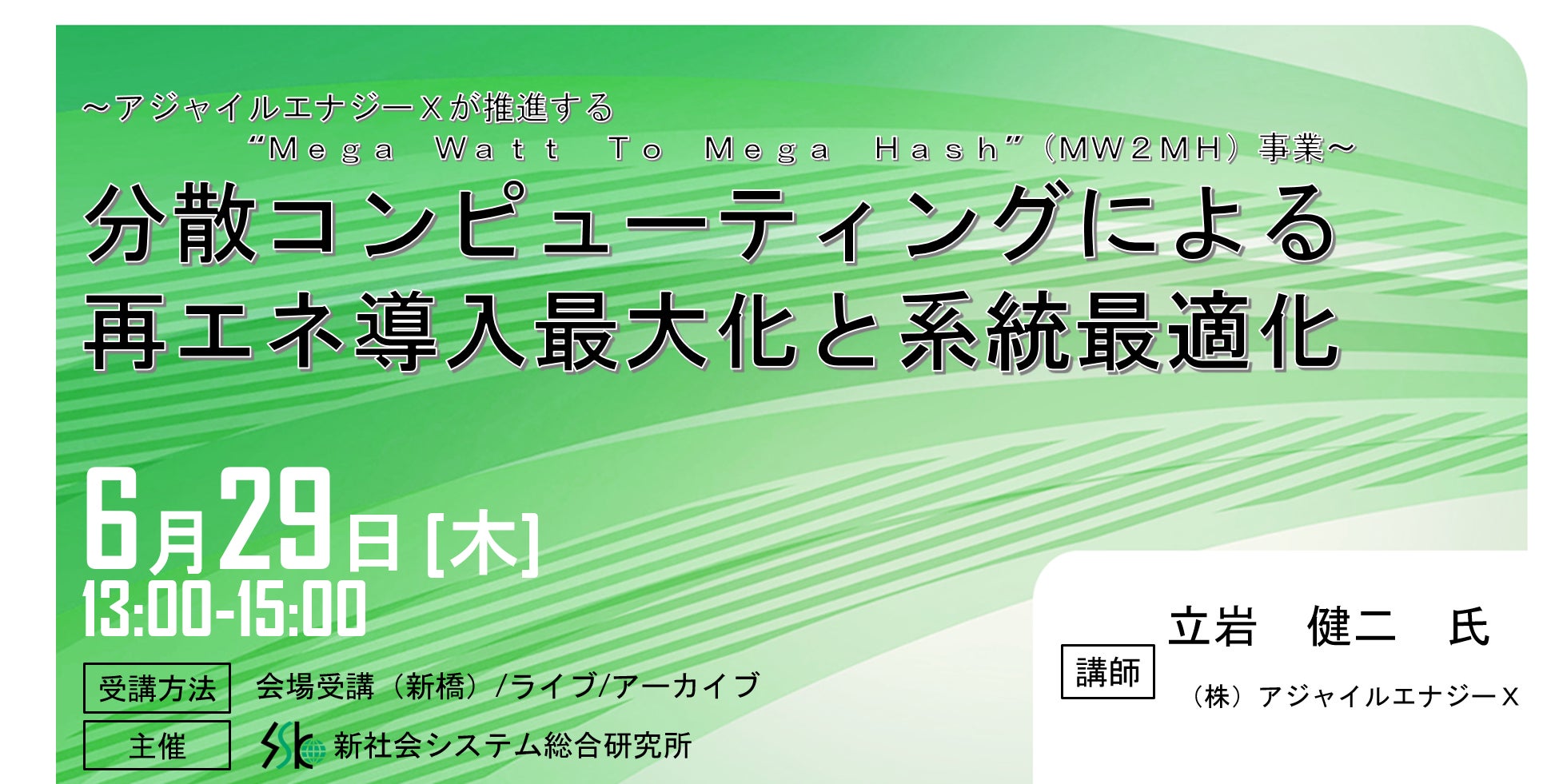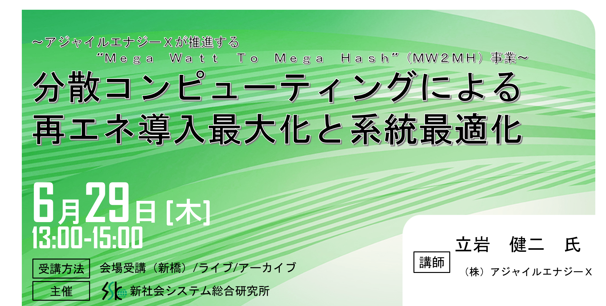 「分散コンピューティングによる再エネ最大化」と題して、株式会社アジャイルエナジーX代表取締役社長 立岩 健二氏によるセミナーを2023年6月29日(木)に開催!!