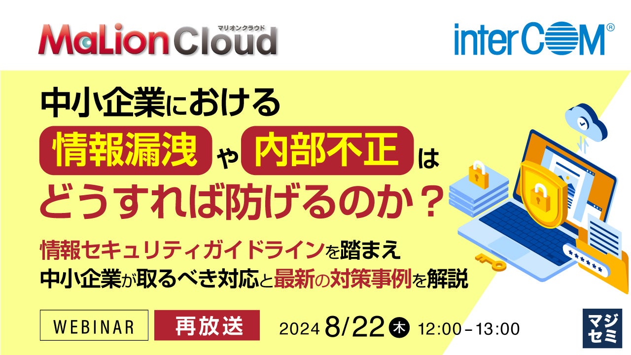 マジセミ株式会社は、大変好評をいただいた「【再放送】中小企業における情報漏洩や内部不正はどうすれば防げるのか?」というテーマのウェビナーを再放送します。
