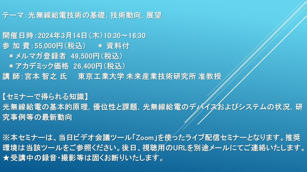【ライブ配信セミナー】光無線給電技術の基礎,技術動向,展望 3月14日(木)開催 主催:(株)シーエムシー・リサーチ