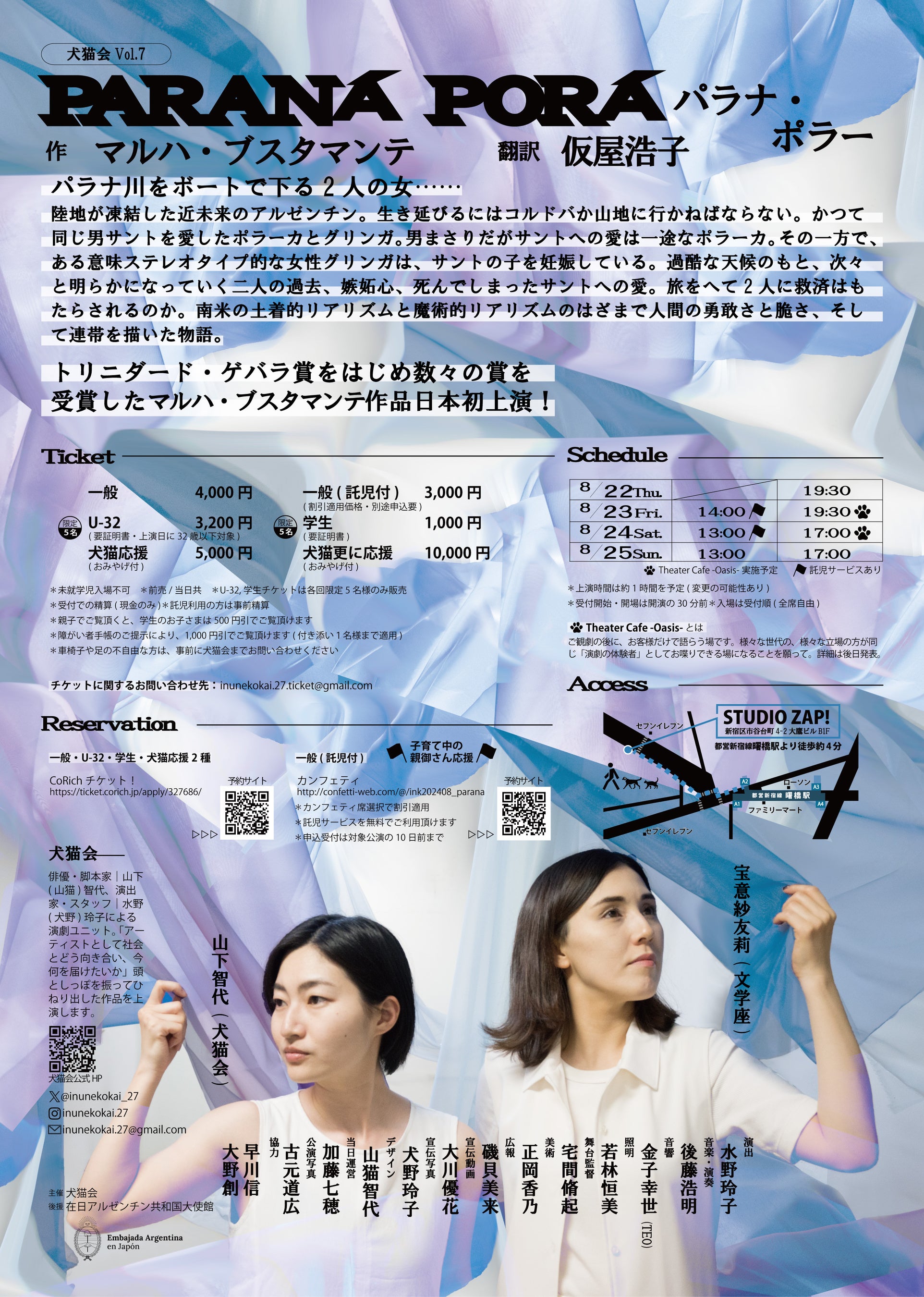 アルゼンチンの作家 マルハ・ブスタマンテ作品日本初上演! 犬猫会 vol.7『パラナ・ポラー』フライヤービジュアル公開&チケット予約開始
