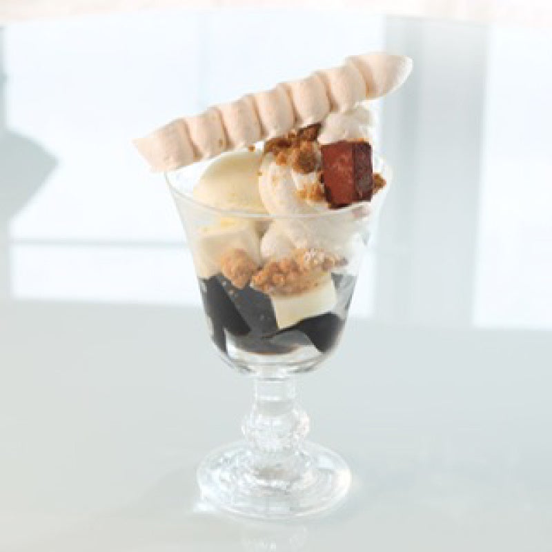 京都特選ブレンド珈琲を使用した濃厚なコーヒーゼリーをアイスクリームや生チョコ、サクサクのメレンゲと共にパフェに仕立てました。