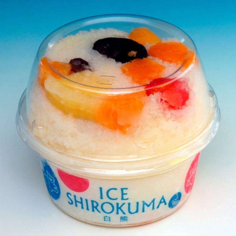 自家製ミルクと蜜をたっぷりかけ、フルーツと十六寸豆を盛り付けた一番人気のかき氷です。