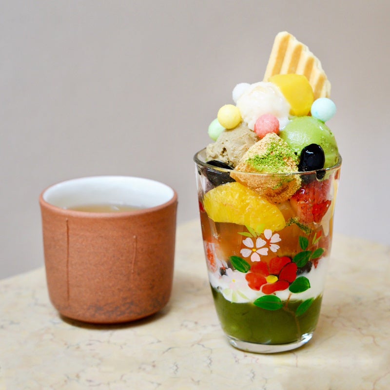 宇治茶尽くしのフルーツパフェ 平安ほうじ茶とともに 税込1,980円
