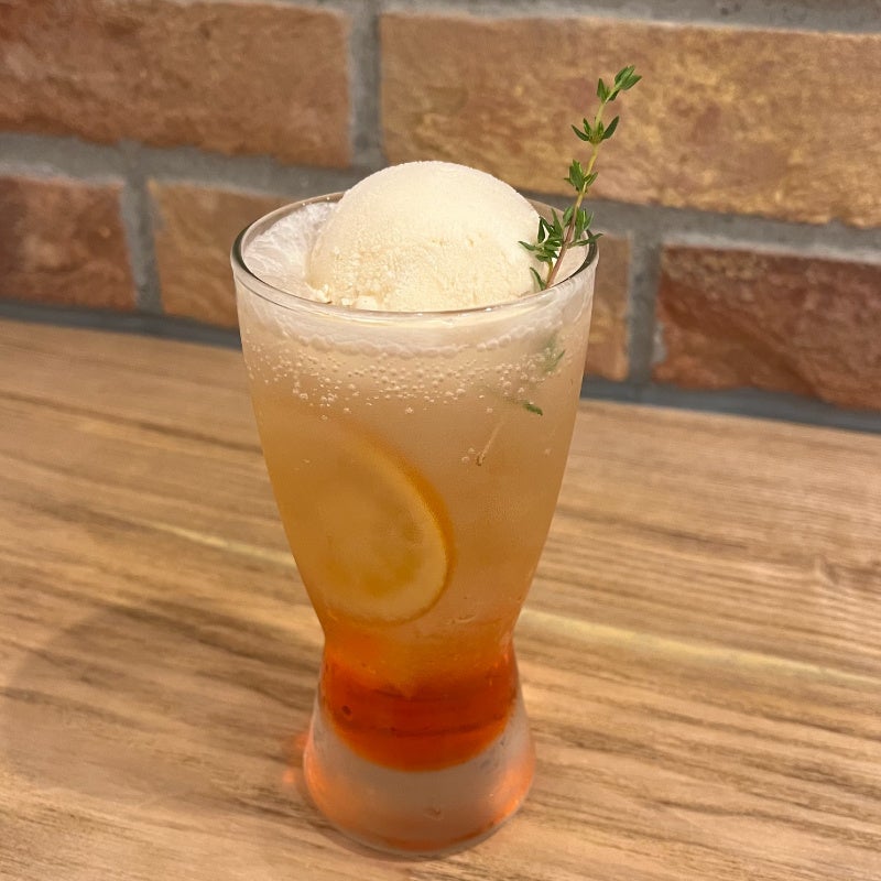 そば茶アイスで作ったクリームソーダ。フランスのジファールシロップをブレンドした、芳醇で洗練された風味です。