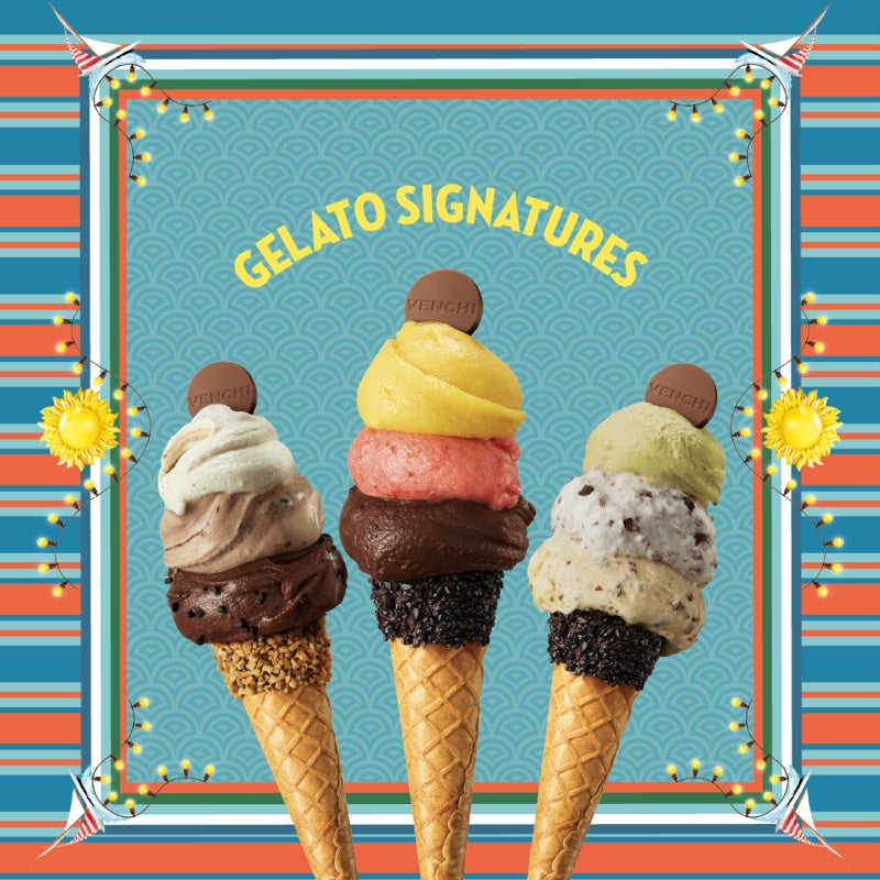 3つのフレーバーを堪能できる人気のサイズ。本場のイタリアンジェラートに、ナッツなどのトッピングで、自分だけのカスタマイズをお楽しみください。
