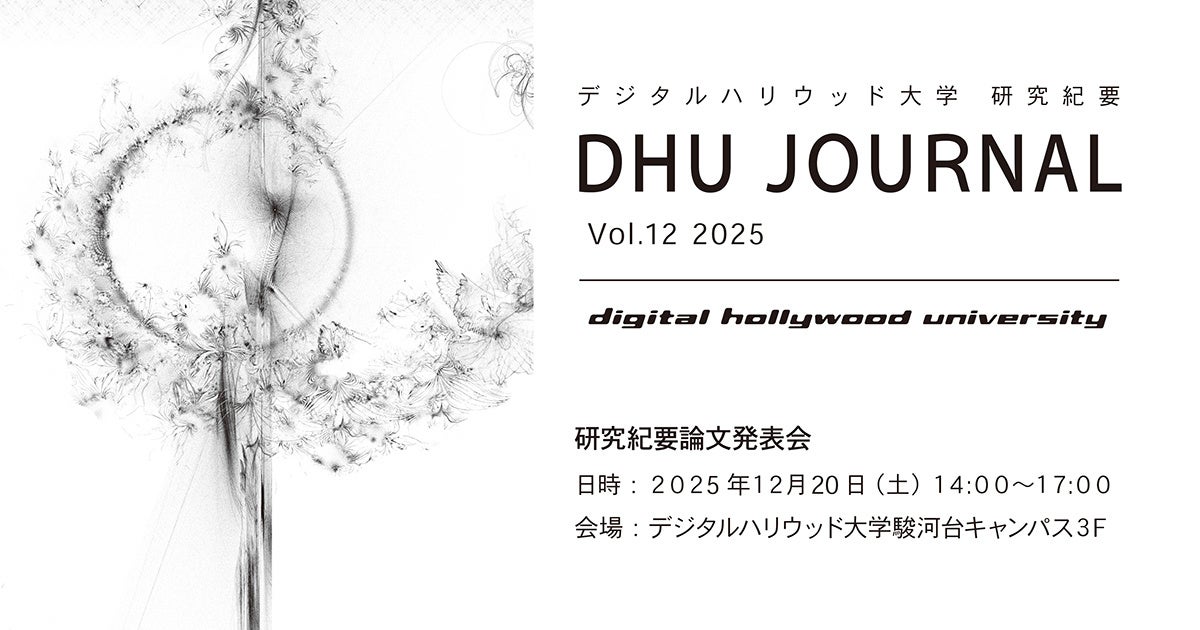 文部科学省認可の株式会社立の大学として、デジタルコンテンツと企画・コミュニケーションを学ぶデジタルコミュニケーション学部(4年制大学)と、理論と実務を架橋し新たなビジネスを生み出すデジタルコンテンツ研究科(専門職大学院)を設置するデジタルハリウッド大学(DHU、所在地:東京・御茶ノ水、学長:杉山知之)では、この度デジタルハリウッド大学研究紀要『DHU JOURNAL Vol.12 2025』および、英語による国際版『DHU INTERNATIONAL JOURNAL Vol.03 2025』を発行し、12月20日より電子版配布を開始します。