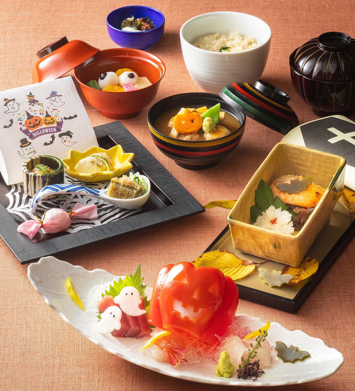 ①和食ディナー「大志満御膳 ~ハロウィンスペシャル~」(前菜/お造り/治部椀/焼き物/お食事/お食後)