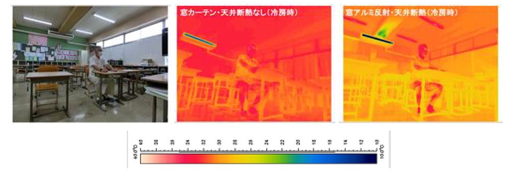 上の画像は、いずれも冷房1台を稼働。天井に断熱工事を施せば、同じ冷房器具でも教室全体の温度を下げられる。 (画像提供:Maelab前真之サスティナブル建築デザイン研究室)