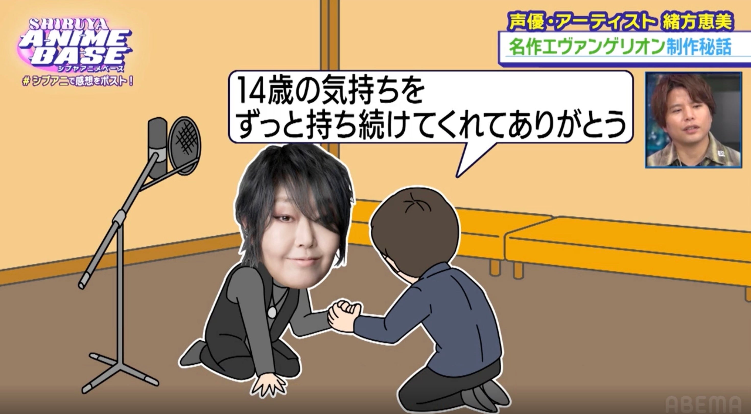 ライブでは、『新世紀エヴァンゲリオン』のオープニング主題歌「残酷な天使のテーゼ」を披露。間奏では碇シンジの声によるパフォーマンスも行われ、会場は大きな盛り上がりを見せました。演じる上での苦悩について緒方は、「14歳の役を演じるためには、14歳の自分の感覚を失ってはいけないと思っていた」「それを続けることでしか、自分の価値はないと感じていた」と告白します。