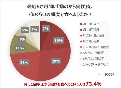 ・からあげを月1回以上食べている人は73.4%となり、多くの方がからあげを食べています。