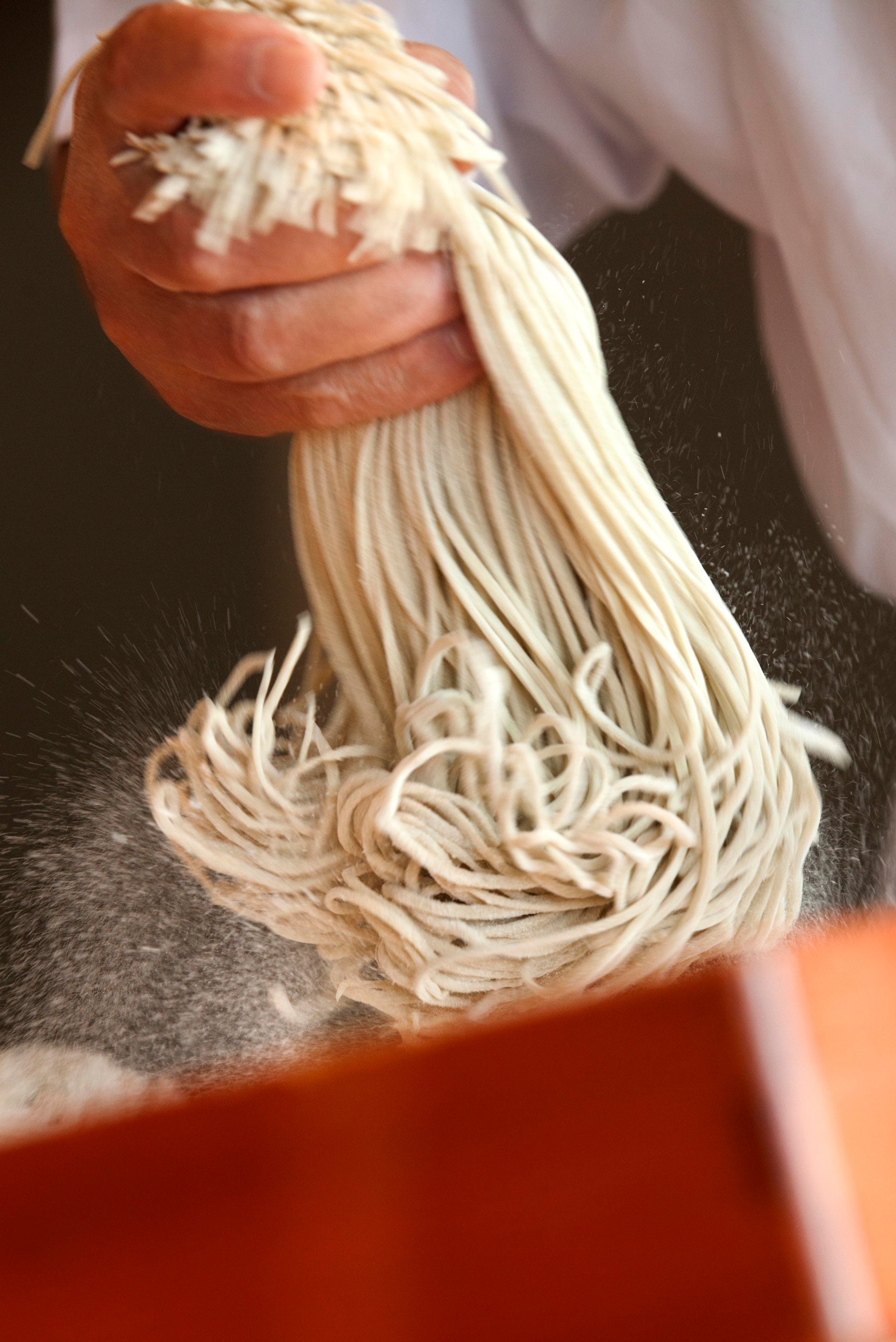 原材料、製粉、水に徹底的にこだわり、そばの一本一本に豊かな風味と香りを宿す「翁達磨」のそば。一切の無駄を省いた流れるようなそば打ちは美しく、“まさに神業”との声も。トントンと響く心地よい軽快なリズムを刻みながらのそば切りを間近で見られるのも、このイベントの魅力の一つです。