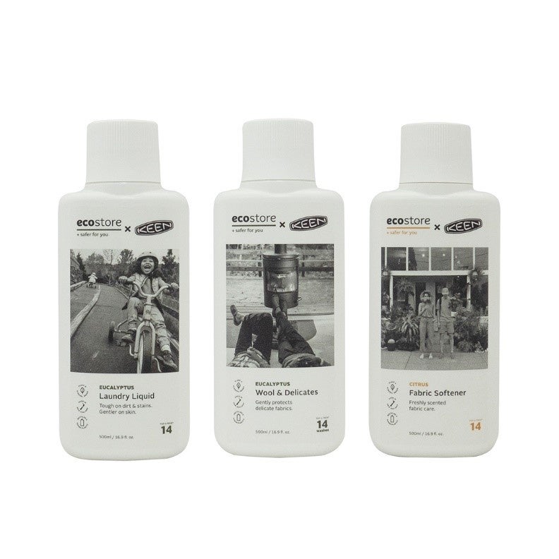洗たく洗剤、おしゃれ着用洗剤、柔軟剤の計3 種類を「ecostore×KEEN オリジナルデザインパッケージ」にて発売。