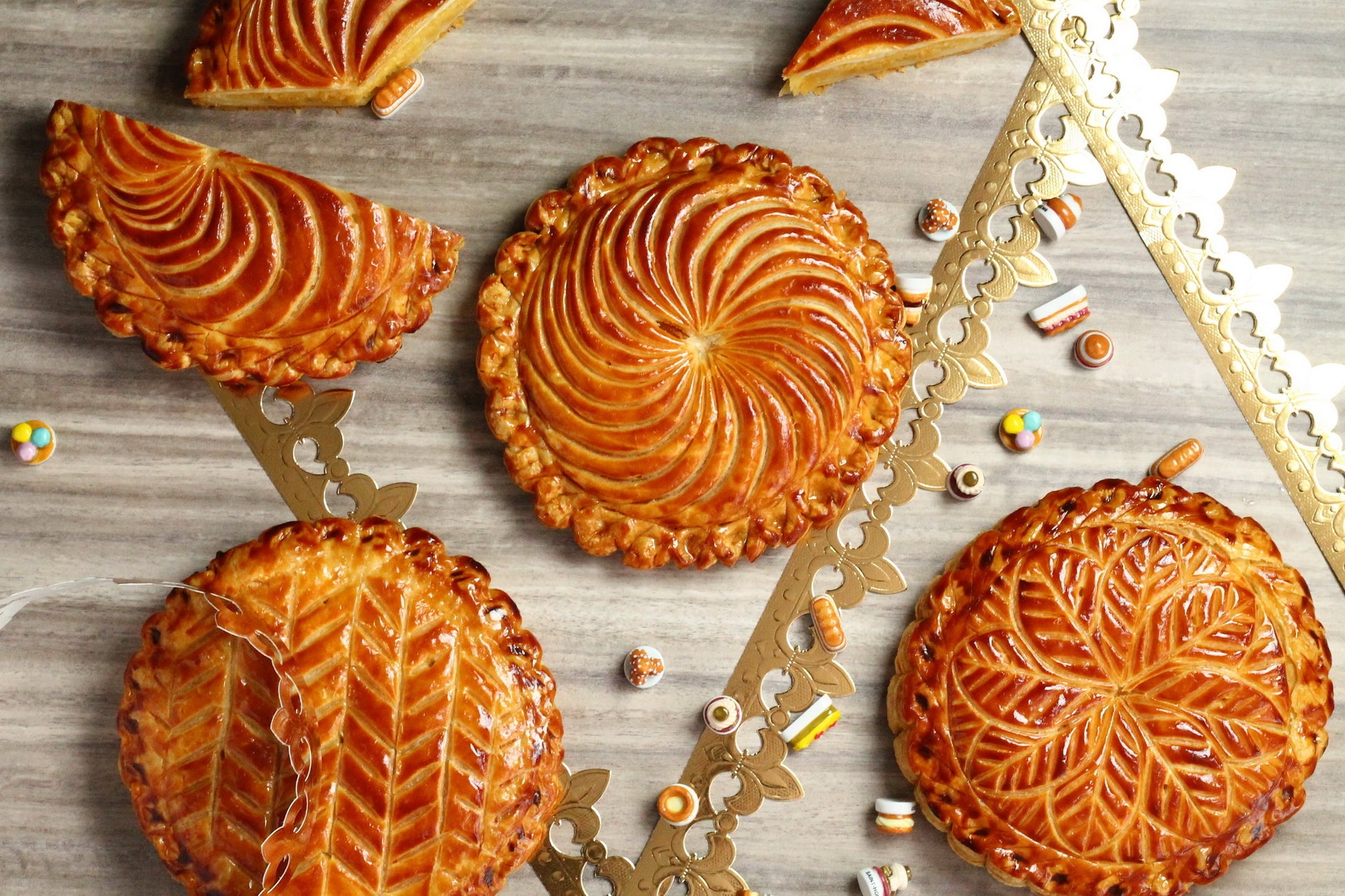 ご購入いただいたお客様には、スイーツの形をした陶器のフェーブをランダムに1つお付けするほか、紙製の王冠をプレゼントいたします。