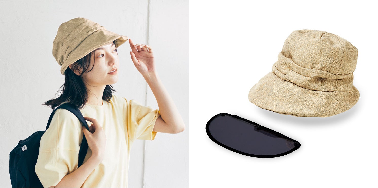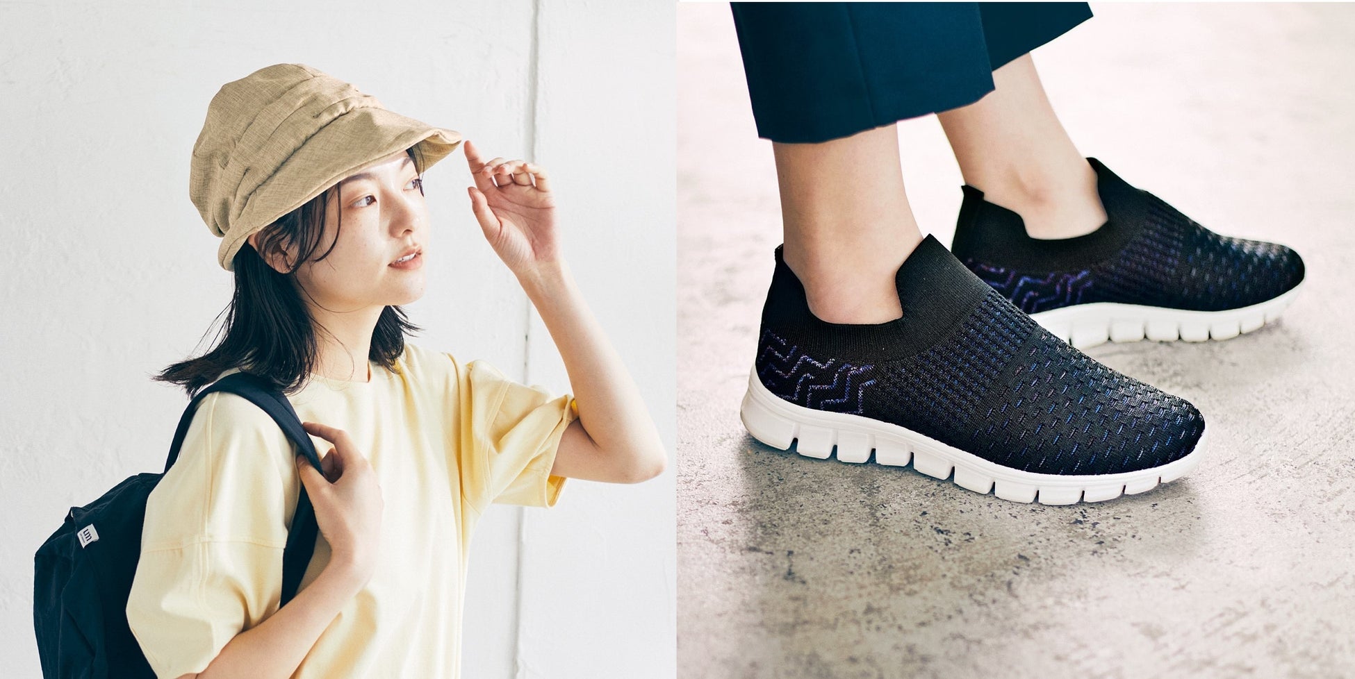 フェリシモ「UP.de[アプデ]」から夏のプチ外出時に使えるグッズ、UVをカットする「サンバイザー付きのクロシェ」と軽くて伸縮性抜群な「ウォーキングシューズ」が新登場