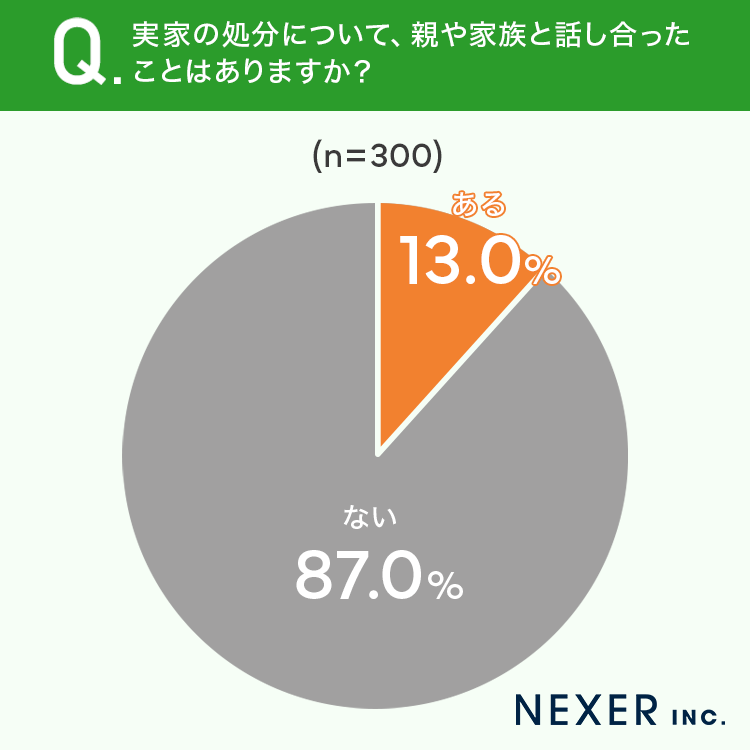 ■87.0%が、実家の処分について「親や家族と話し合ったことがない」と回答