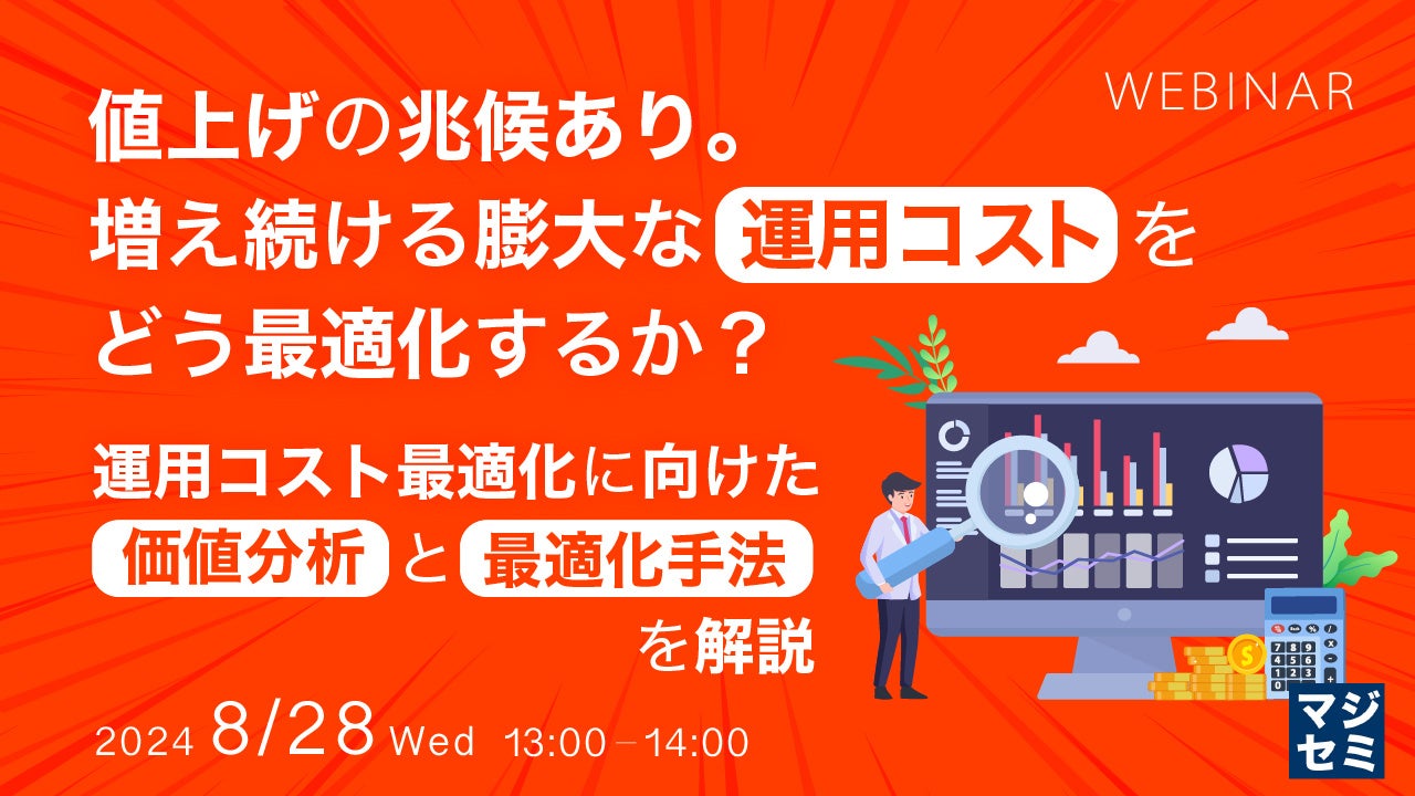 マジセミ株式会社は「値上げの兆候あり。増え続ける膨大な運用コストをどう最適化するか?」というテーマのウェビナーを開催します。