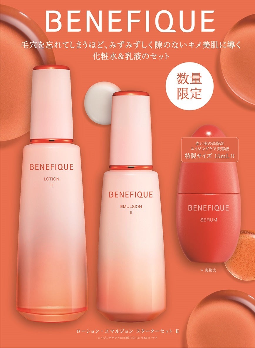 資生堂は、化粧品専門店専用ブランド「ベネフィーク」から、化粧水・乳液【全12品 参考小売価格3,800円~7,500円(税込4,180円~8,250円)※1】を2024年6月21日(金)に発売します。また同日に「ベネフィーク ローション・エマルジョン スターターセットⅡ」【全1品】を数量限定で発売。全国の化粧品専門店(Omise+〈オミセプラス〉※2含む)にて販売します。※1