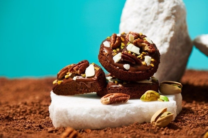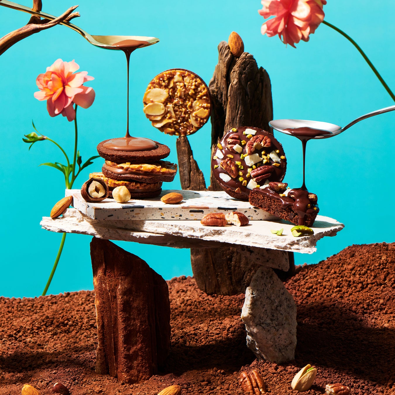 アーモンドとチョコチップを混ぜ込んだしっとり食感の生地上に、【ピーカンナッツ ✕ ピスタチオ ✕ ダークチョコレート】のマンディアンの彩りを加えたブラウニーです。
