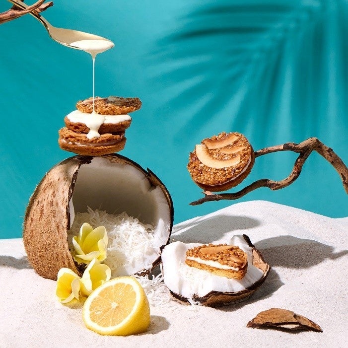 冷たいアイスティーと合わせるとさっぱりとした余韻を、アイスコーヒーと合わせるとココナッツとアーモンドがもつナッツ独特の風味がより一層引き立ちます。