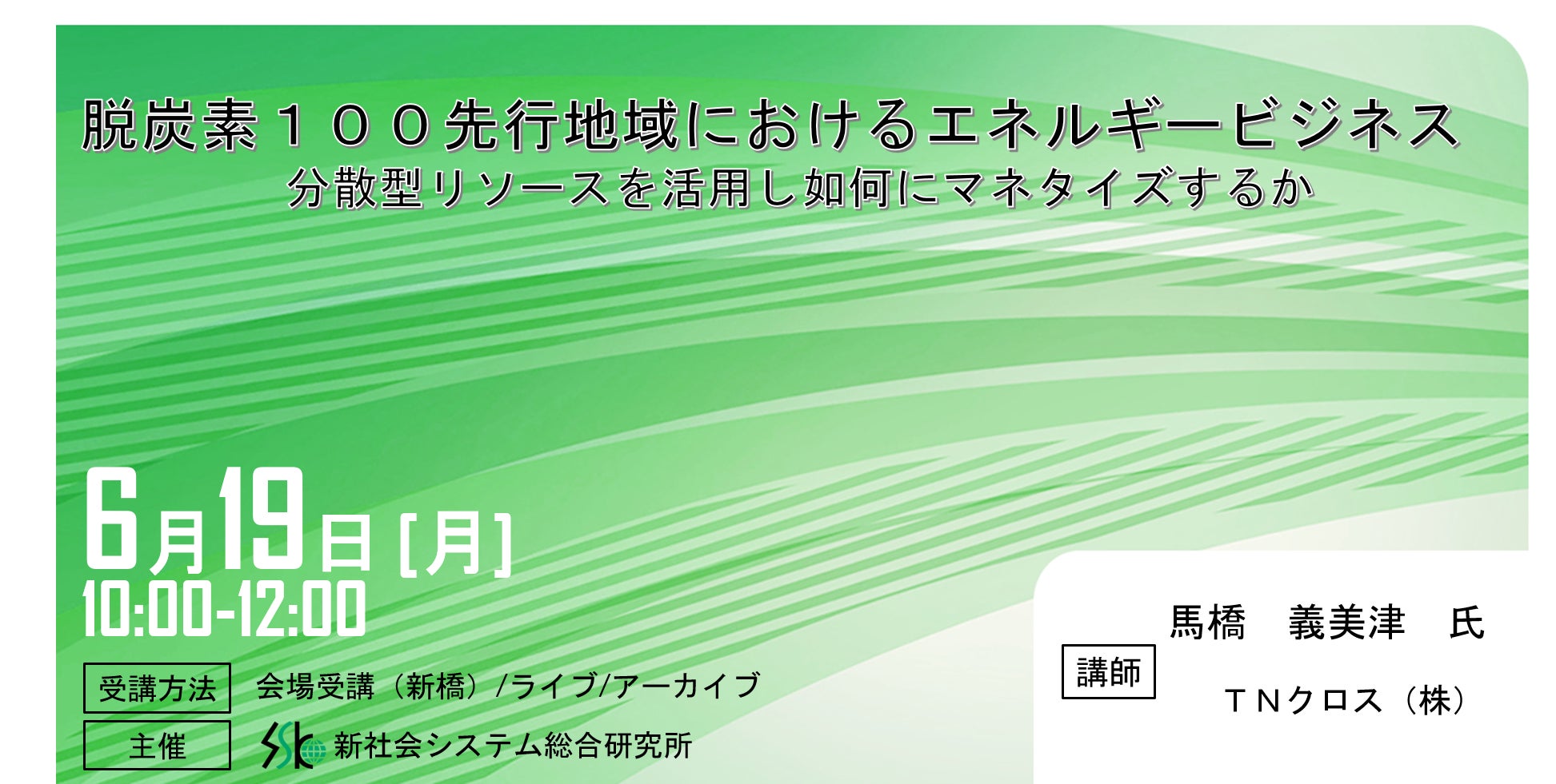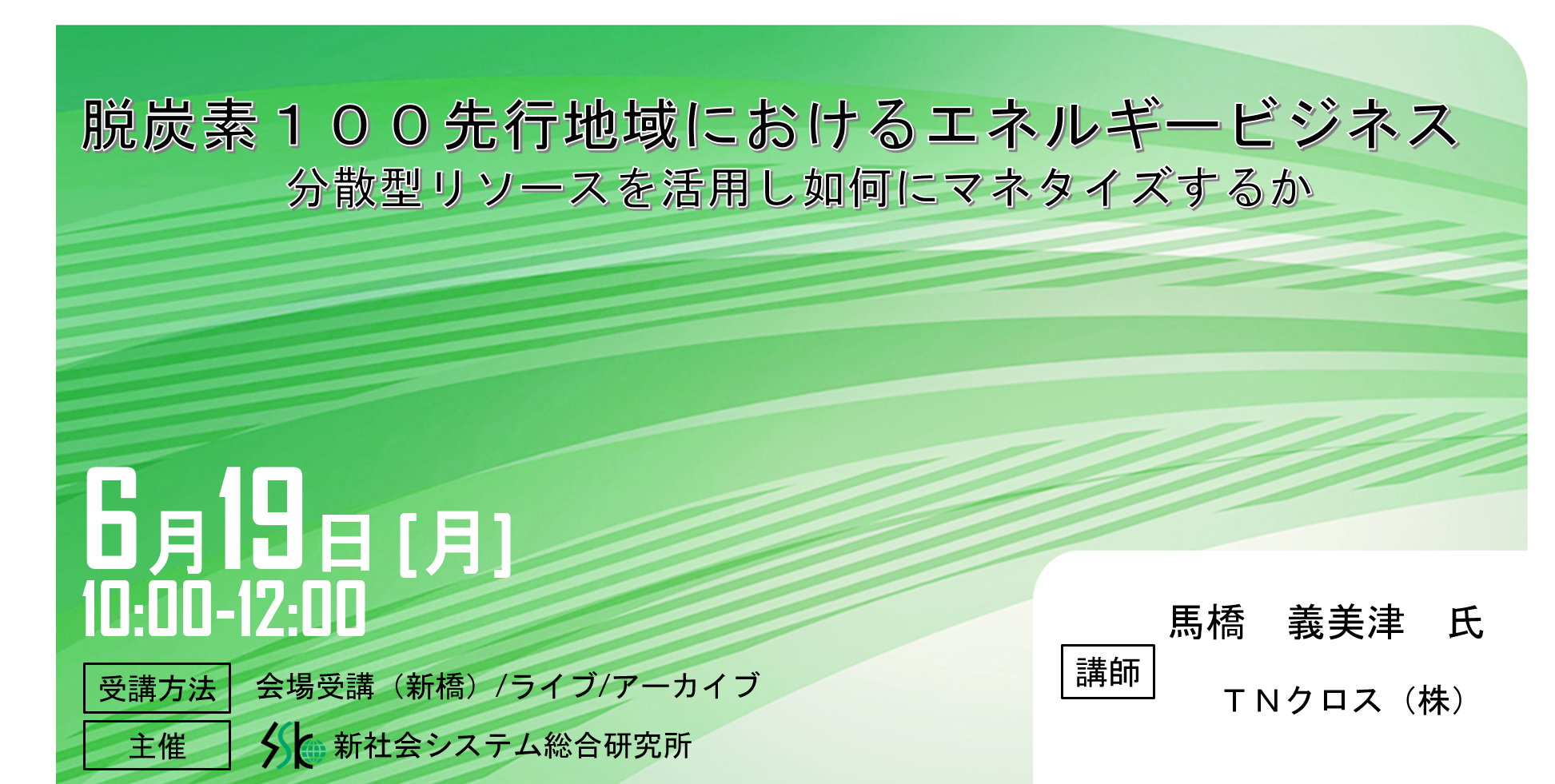 「脱炭素100先行地域におけるエネルギービジネス」と題して、TNクロス株式会社 代表取締役副社長 馬橋 義美津氏によるセミナーを2023年6月19日(月)に開催!!