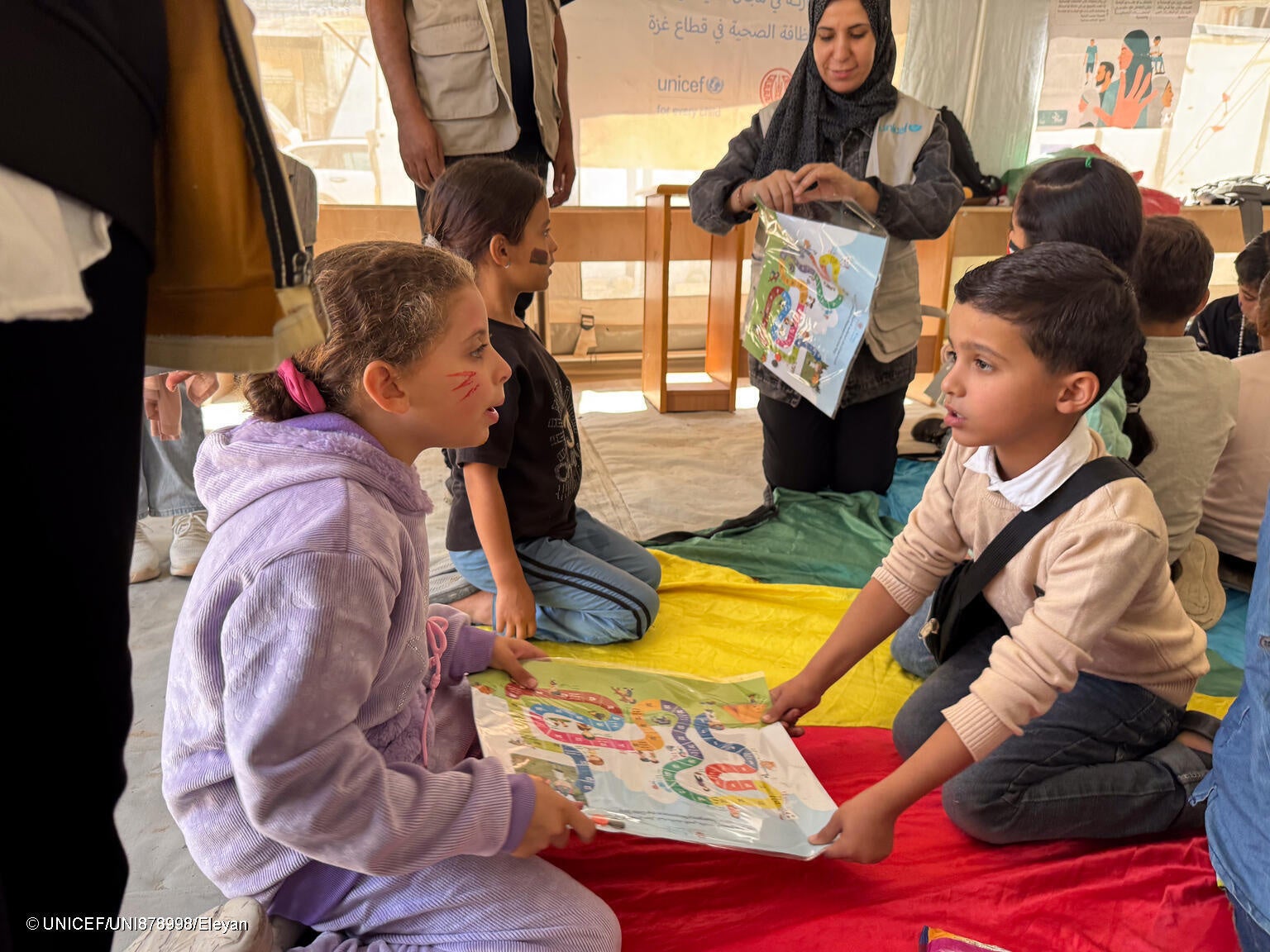 現地のニーズ分析に基づき、これまで拒否または制限されてきた物品を含む多様な支援物資の緊急搬入を許可すること。ユニセフの教育キットおよびメンタルヘルスケア・心理社会的支援キットは1年以上も阻まれています。これらのキットは、今すぐ搬入される必要があります。