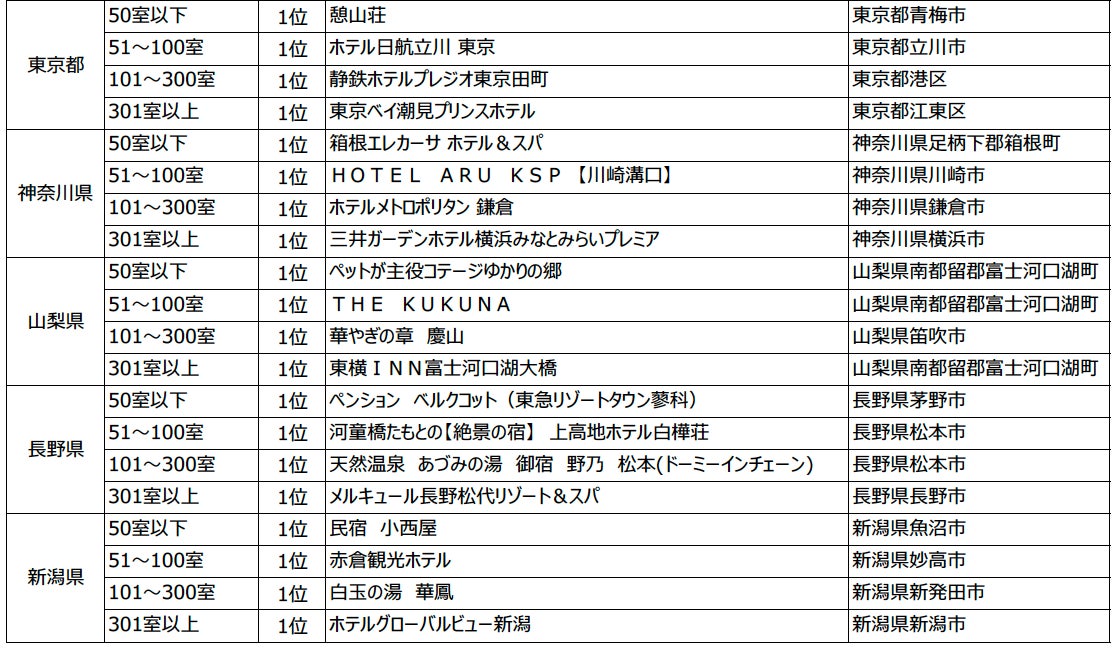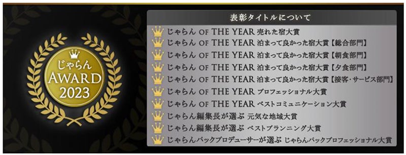 2023年度の1年間に顕著な実績を収めた宿泊施設を表彰「じゃらんアワード2023」関東・甲信越ブロック発表