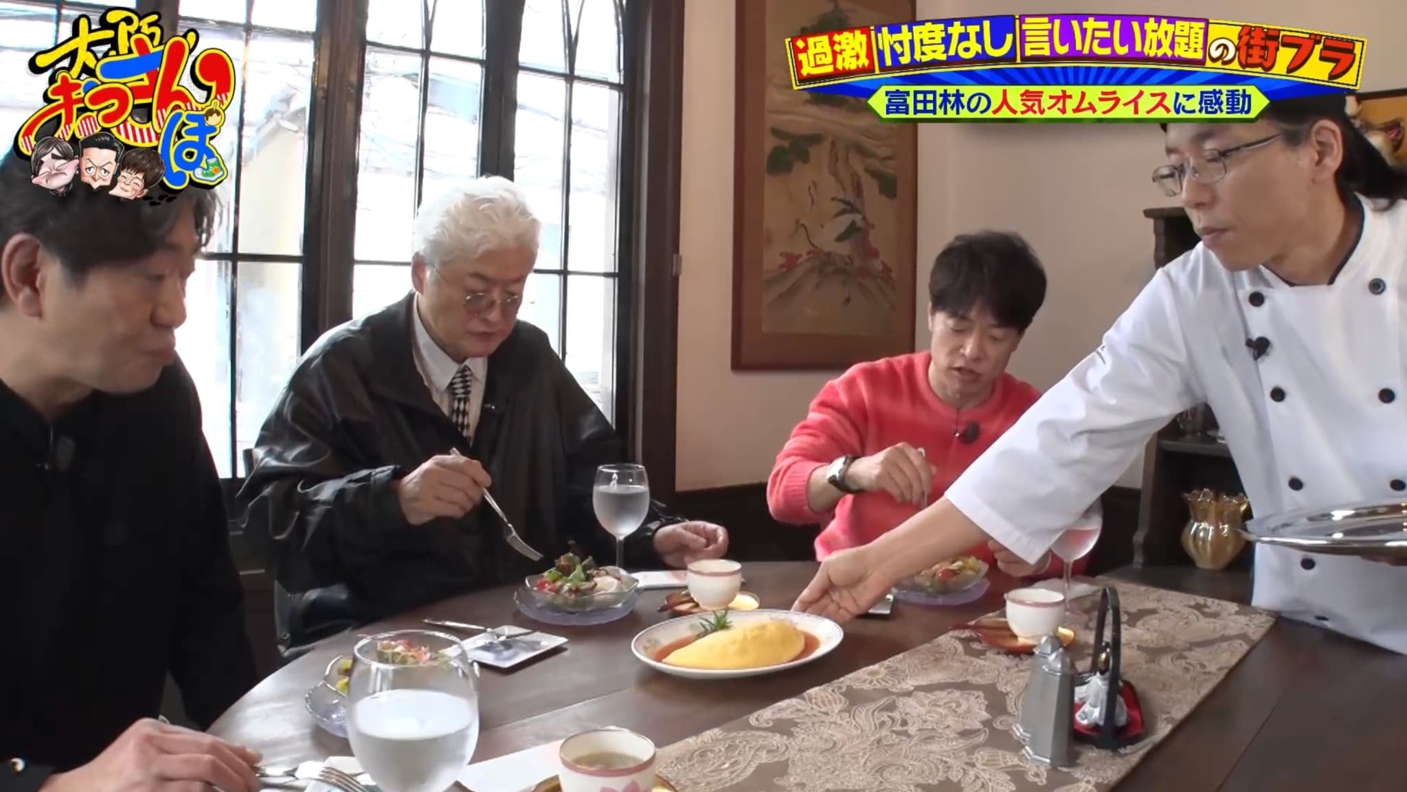 買い物を済ませ、2階のカフェでランチ。話題は孝則の生い立ち。福岡にある実家は婚礼家具などを製造する木工所で、家族と職人を合わせて34人で暮らしていたという驚きの生活を明かす。また、俳優・池松壮亮の両親や、藤井フミヤとのと思いがけないつながりに、驚きを隠せない黒田と智則。