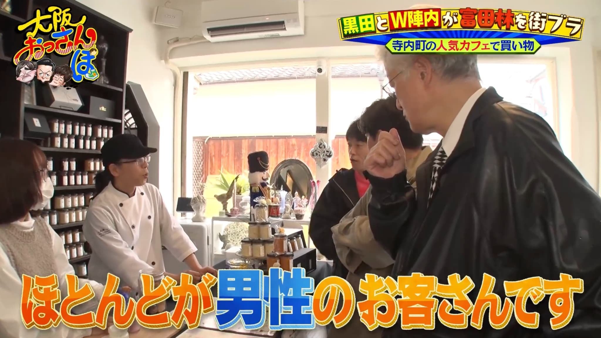小腹が空いたおっさんたちは、カフェ「Bolero(ボレロ)」へ。1階では食品や雑貨を販売していて、自家製クリームチーズは黒田のラジオ番組で紹介されたことでリスナーが訪ねてくるという。「じゃあ僕、貢献してますね!」と喜ぶ黒田だが、ほとんどが男性だと言われ、智則は「黒田ファンは60超えたおっさんしかおらへん」と茶化す。