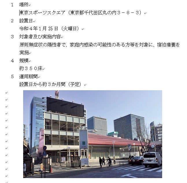 東京都では、新型コロナウイルス患者の軽症者について、都内ホテルを借り上げ、宿泊療養施設として提供しているところですが、今般、感染拡大の防止に向け、無症状者を対象とした療養施設として、感染拡大時療養施設(東京スポーツスクエア)を設置することといたしましたので、お知らせします。