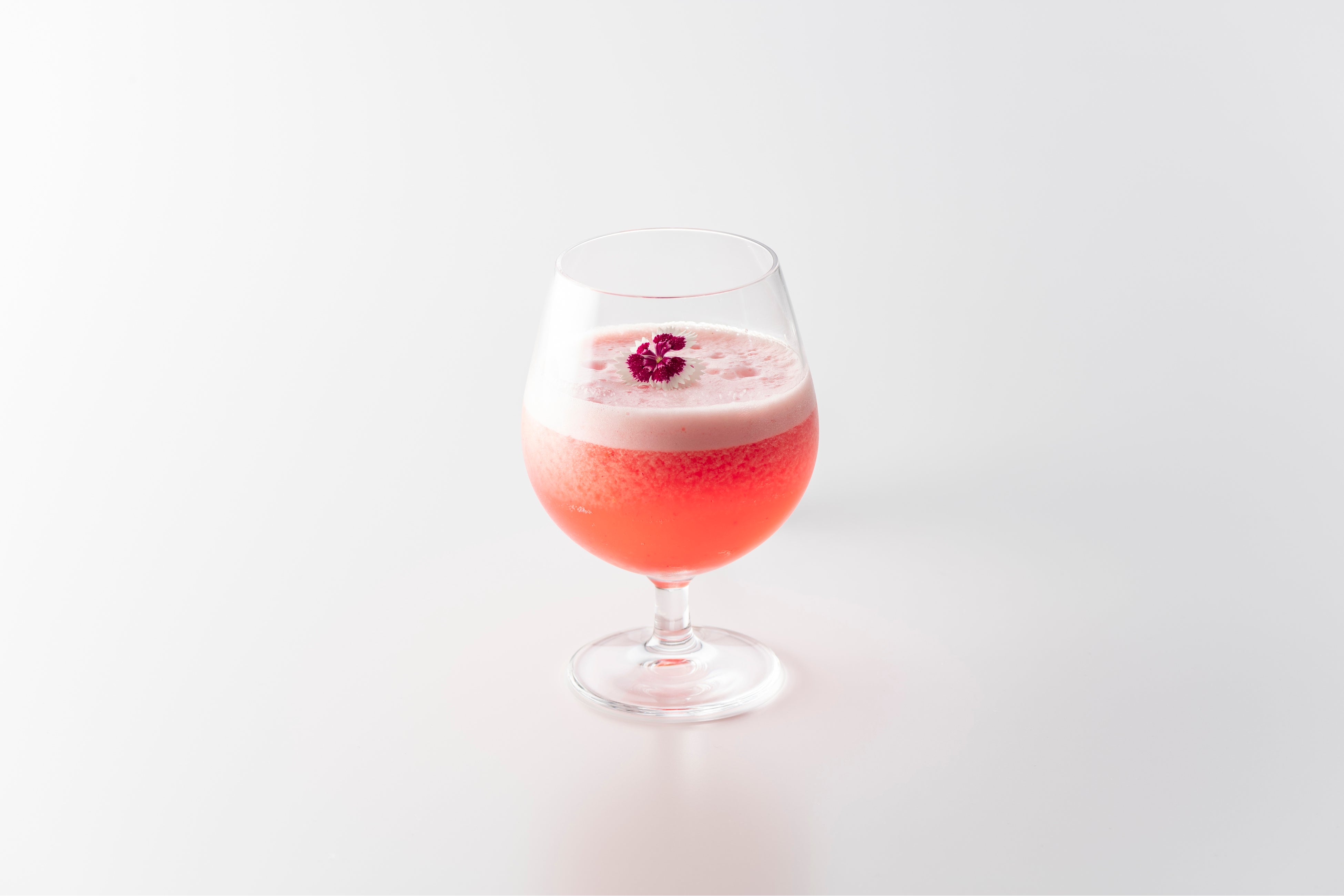 ノンアルコールカクテル「Daisy blooms」は、「デイジー」をイメージした可愛らしいピンクが目を引く一杯です。フレッシュな苺やフランボワーズ果汁にカモミールシロップ、林檎ジュースなどを加えノンアルコールスパークリングで仕上げました。甘すぎず爽やかな後味で、ランチのお供にもおすすめです。ホテルロビー階(LBF)のオールデイダイニング、ガーデンキッチン「かるめら」にてご用意いたします。