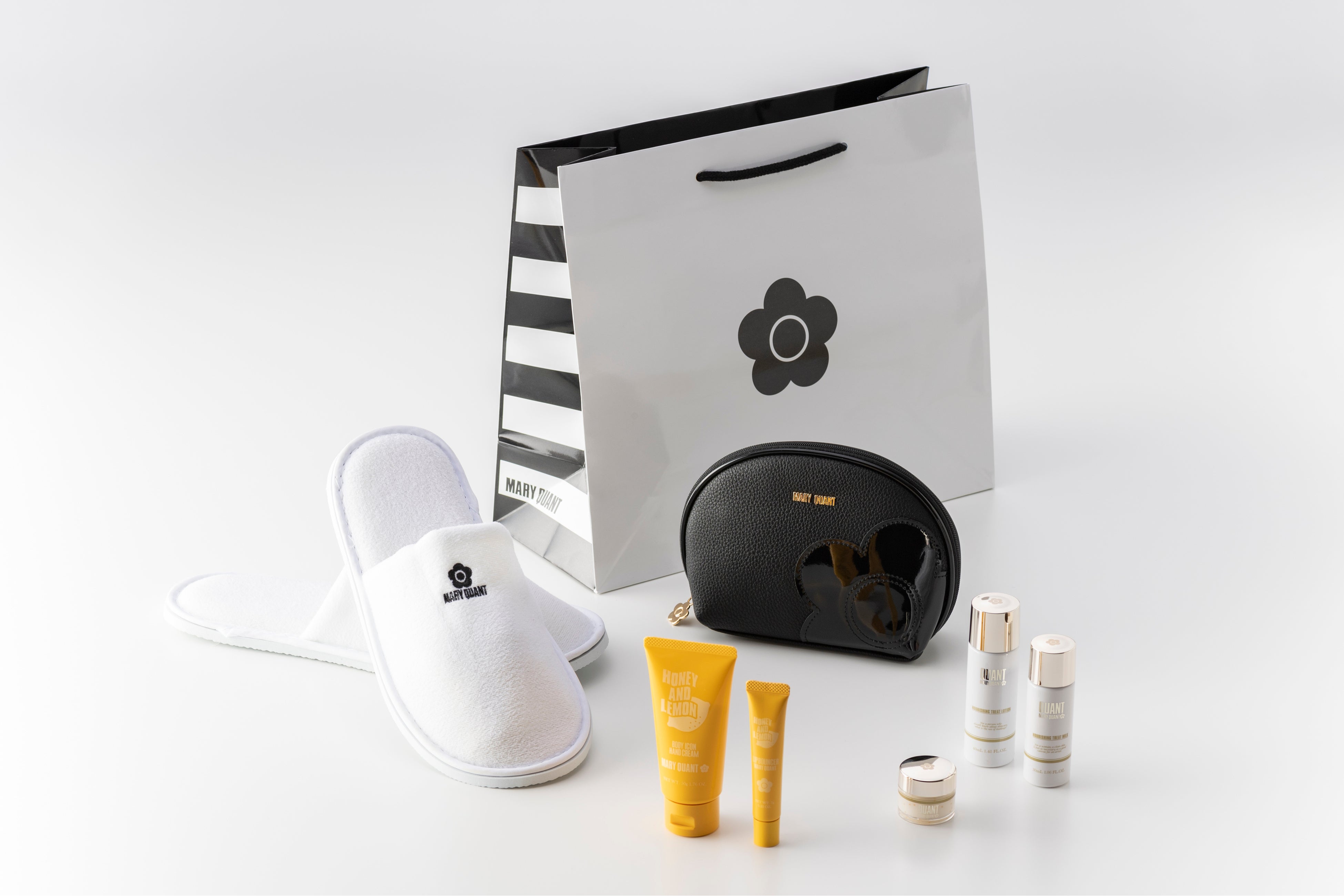 「マリークヮント コンセプトルーム」は、「マリークヮント」の世界観を表現した2タイプの客室をご用意。「コーナールーム」はブラック&ホワイトのアイコニックなビッグデイジー、「デラックスルーム」はピンク&ホワイトの可愛らしいデイジーに囲まれた特別仕様。各部屋には本プランのためにセレクトしたコスメセット、ラウンドポーチなどの持ち帰り可能なスペシャルギフトを設置。“自由”と“独創性”を表現したブランドマークに囲まれた室内で、「自分らしい過ごし方」でゆっくりとお楽しみいただけるこの企画は、「MARY QUANT コラボレーションルーム」宿泊プランにて2022年10月3日(月)よりご予約可能です。また通常客室と「マリー・クワント展」入場チケットがセットになった宿泊プランも、同日より販売いたします。