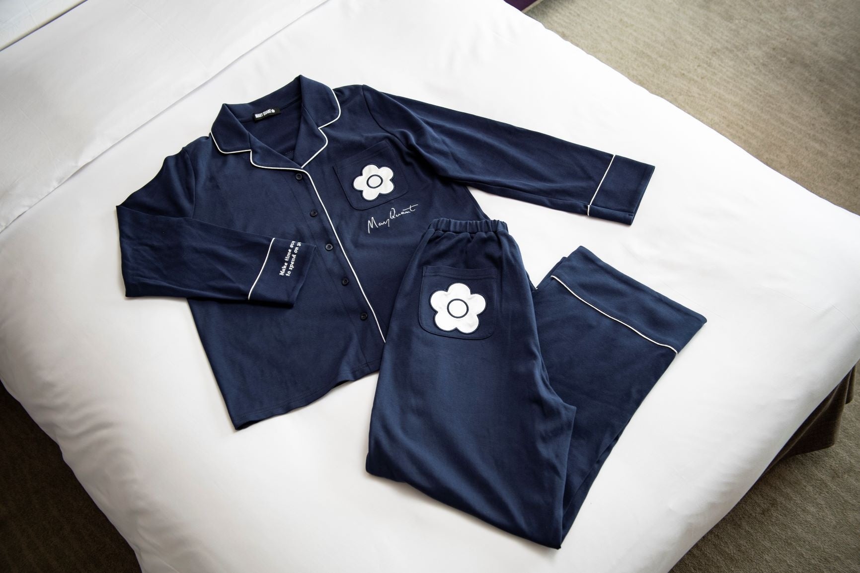 ・内容:ベッド背面と窓をブランドシンボルである「デイジー」で装飾。「マリークヮント」の世界観を表現した2タイプの特別なコラボレーションルーム。デラックスツインルームはピンク&ホワイトで可愛らしいピンクデイジーに囲まれるハッピーな空間に、コーナーツインルームはブラック&ホワイトのアイコニックなビッグデイジーを散りばめました。タオルなどの一部アメニティをマリークヮント製品に入れ替え、本プランのために作られたネイビーのルームウェアをご用意いたしました。