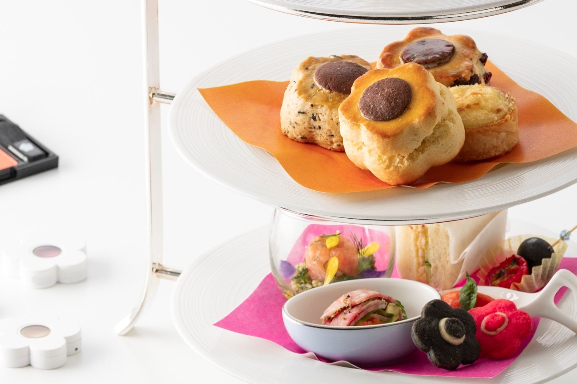 「トゥール ド アンサンブル with MARY QUANT」は、ブランドシンボル「デイジー」がアクセントのスコーンやデザートが3段のスタンドに彩られたアフタヌーンティーセットです。飲み物は約30種類の「ティーセレクション」よりお好きなだけお召し上がりいただけます。カラフルな色合いとモダンなデザインが目を引く華やかなコラボレーションアフタヌーンティーは、ホテルロビー階(LBF)の日本庭園を望むガーデンラウンジ「坐忘」にて、2022年12月1日(木)より販売いたします。