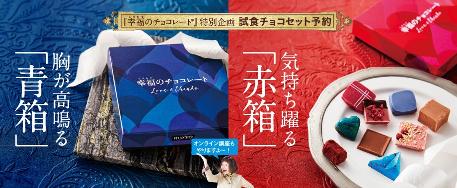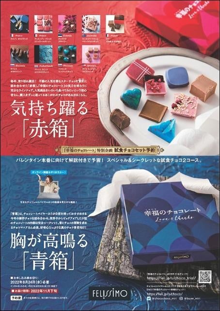 バイヤー直伝のストーリーを聞きながらチョコを食べる「幸福(しあわせ)のチョコレート講座 試食チョコセット」赤箱、青箱のウェブ予約受け付け中