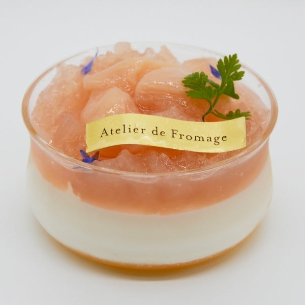 自家製リコッタに桃を合わせたレアチーズケーキ。