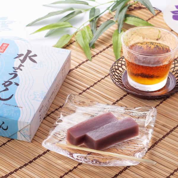 北海道産小豆のこし餡を、すっきりとした甘さの瑞々しい水ようかんに仕立て、折箱に流し込んだ「一枚流し」の商品です。お好みの大きさに切り分けてお召しあがりいただけます。