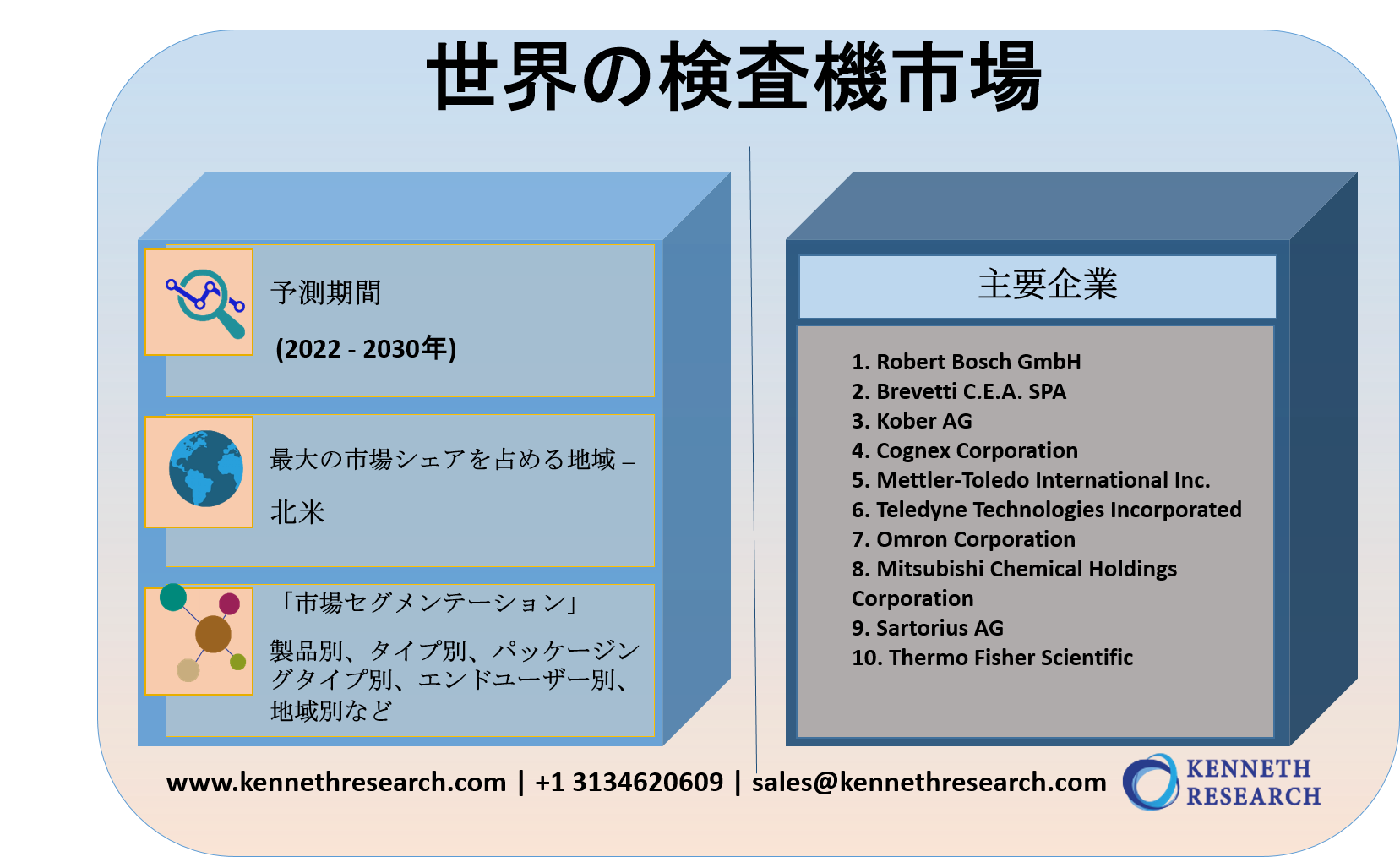 Kenneth Researchは、世界の検査機市場の予測評価を提供する調査レポートを2021年12月 10日 に発刊しました。これは、世界の検査機市場の成長ドライバー、市場機会、課題、脅威など、いくつかの主要な市場ダイナミクス強調しています。