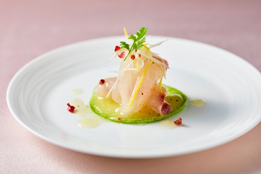 カンパチのカルパッチョと彩り大根 生姜のビネグレットソース