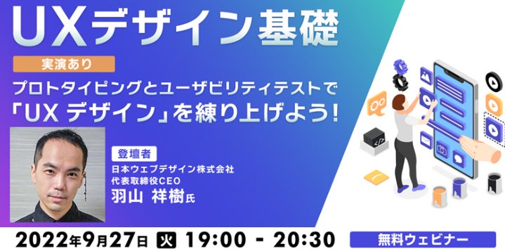 UXデザインの“プロトタイピング”“ユーザビリティテスト”を解説!【実演あり!】9/27(火)無料セミナー「UXデザイン基礎」