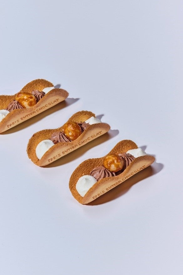 フランス最高峰の熟成士M.O.F. ロドルフ・ル・ムニエ氏の監修のもと、フランス産発酵バターで焼き上げたラングドシャで生食感のショコラを包んだお菓子をお届けするスイーツブランド〈パリバターショコラ〉が大丸神戸店に初登場!