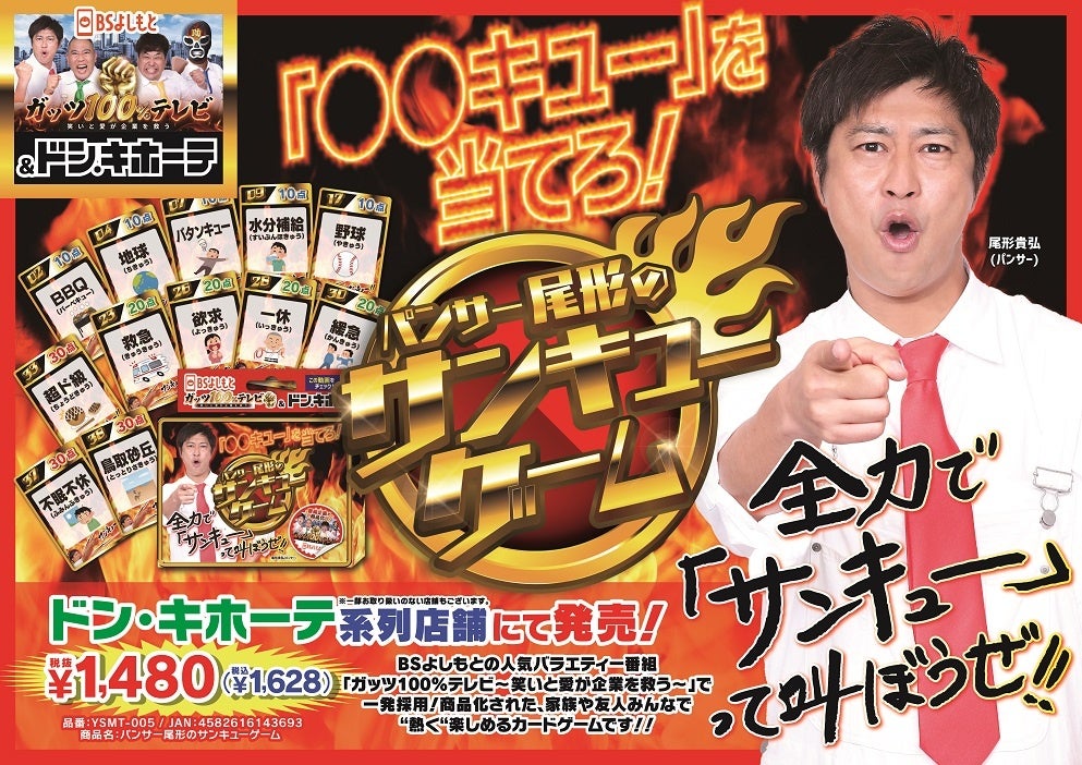 BSよしもと『ガッツ100%テレビ』の企画から商品化が実現!パンサー尾形の『サンキューゲーム』ドン・キホーテ系列320店舗で10月24日(火)発売!