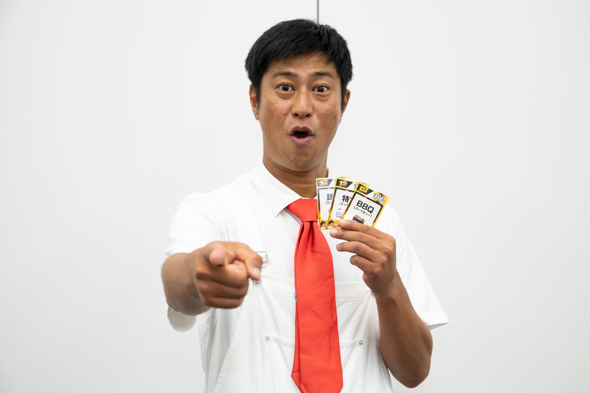 もともとは尾形が考案したという『サンキューゲーム』は、尾形いわく「昔、合コンでよくやっていたゲーム」だそうで、そのルールはいたってシンプル。「野球(ヤキュー)」や「BBQ(バーベキュー)」など、言葉尻に“キュー”の付く単語が書かれたカードを引いた親がジェスチャーでその言葉を表現し、プレイヤーが正解したらカードに書かれたポイントをゲット。ジェスチャー前や正解が出た時など、要所要所で「サンキュー!」と言い合いながら、最終的にポイントの高かった人が勝ちという、家族や友人みんなで“熱く”楽しめるカードゲームです。