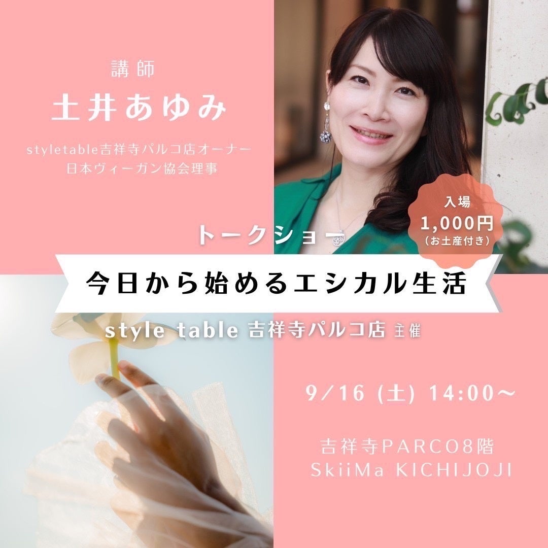 style table 吉祥寺パルコ店オーナーであり、日本ヴィーガン協会理事、Vegan検定認定講師である土井あゆみが、今日から取り入れられるサステナブルな取り組みを紹介します。