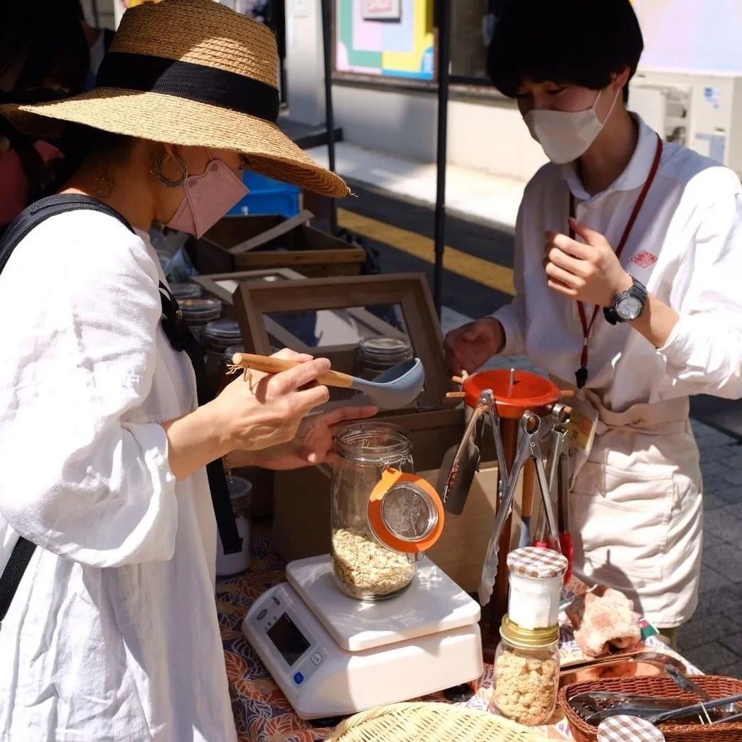 「野の」は、地元野菜や伝統的な調味料、食材、日用品等の量り売りと、日替わりカフェを併設した店舗です。今回は、日常的に使える調味料や乾物、麺類、ドライフルーツやナッツ、蜂蜜などをご用意する予定です。容器や袋をご持参いただいて、お好きなものをお好きなだけお買いものする「量り売り」をお楽しみください。