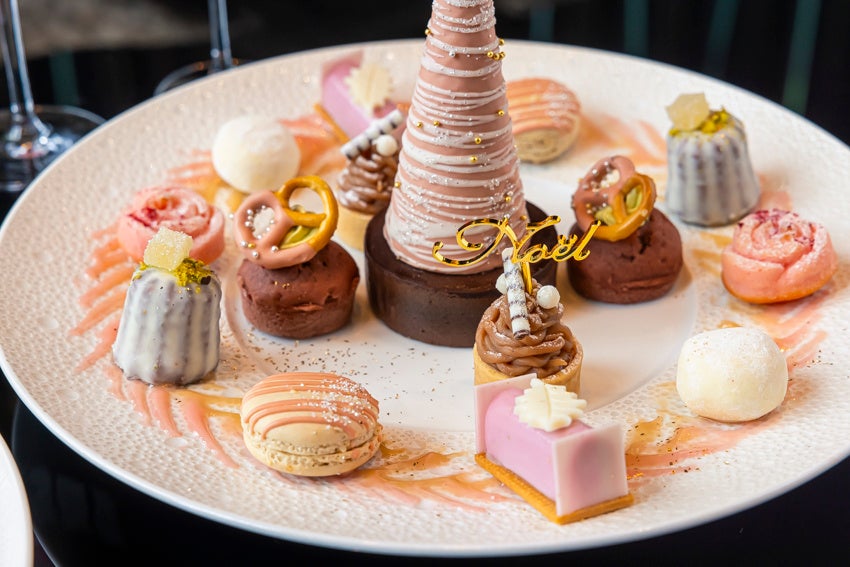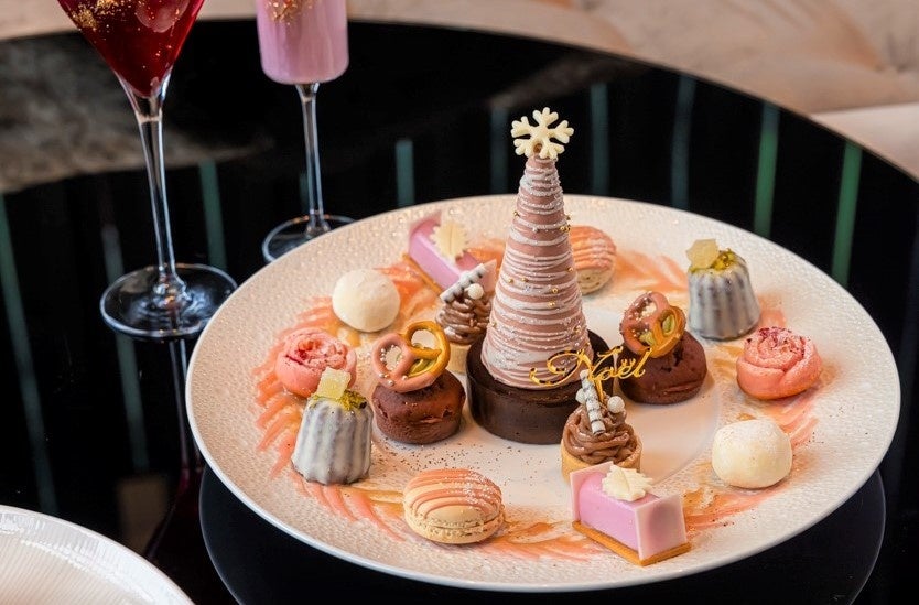 スイーツプレートは、プレッツェルを飾ったケークフレーズショコラやフロマージュミニブッシュ、モンブランタルトを煌びやかなベビーピンクのクリスマスツリーの周りに並べ、心温まるファミリークリスマスを表現。グラススイーツにスノーベリークリスマス、シュタイフプレートにはスパークリングベリージュレやスノードームショコラロールをご用意しました。セイボリープレートには、ビーツのバンズで味わうローストビーフバーガーや、シャンパンをイメージしたトマトのジュレ、サンタクロースのチーズタルト、キャビアをのせたサーモンクレープロールなどフェスティブシーズンならではのメニューをお楽しみいただけます。